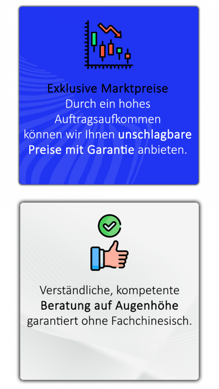 Preisgarantie & Unschlagbare Preise: Durch direkten Kontakt zu den Versorgern und Sonderkonditionen können wir Ihnen aufgrund unseres stetig wachsenden Kundenstammes unschlagbare Marktpreise bieten!